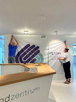 This year a new tradition was introduced: the passing of the FESSH flag as a symbol of continuity, from the current Congress President to the new Congress Presidents — this time Esther Vogelin and Philipp Honigmann. Together with the Swiss Society for Surgery of the Hand and the Swiss Society for Hand Therapy, they will organise the FESSH-EFSHT Congress in 2026 in Basel. And their enthusiasm for this task is clearly visible in the photos below.